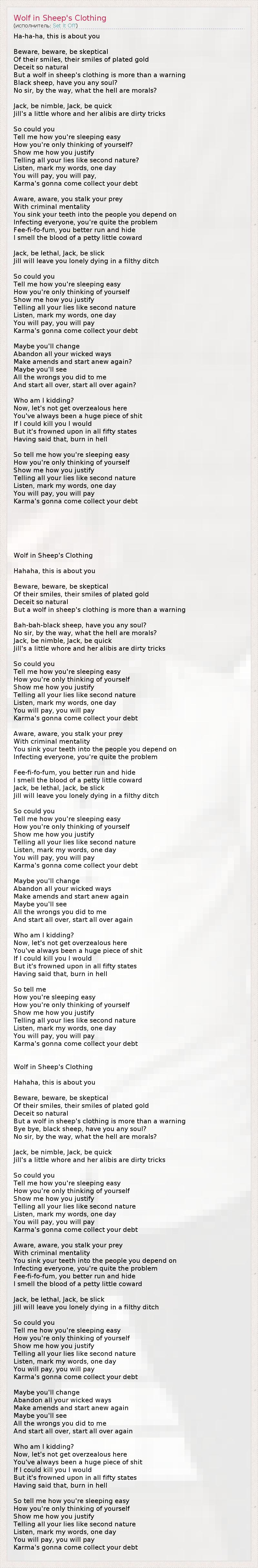 ГлавнаяИсполнителиSet It OffWolf in Sheep's Clothing