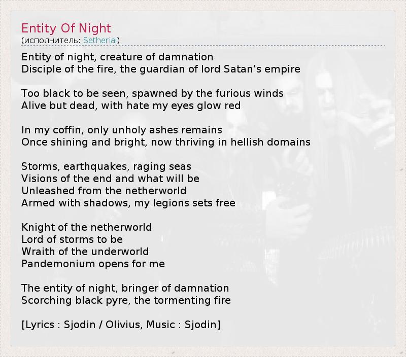 А как ты думаешь, о чем песня "Entity Of Night" ?