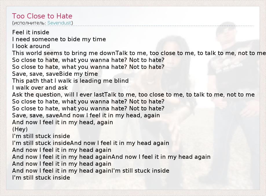 А как ты думаешь, о чем песня "Too Close to Hate" ?