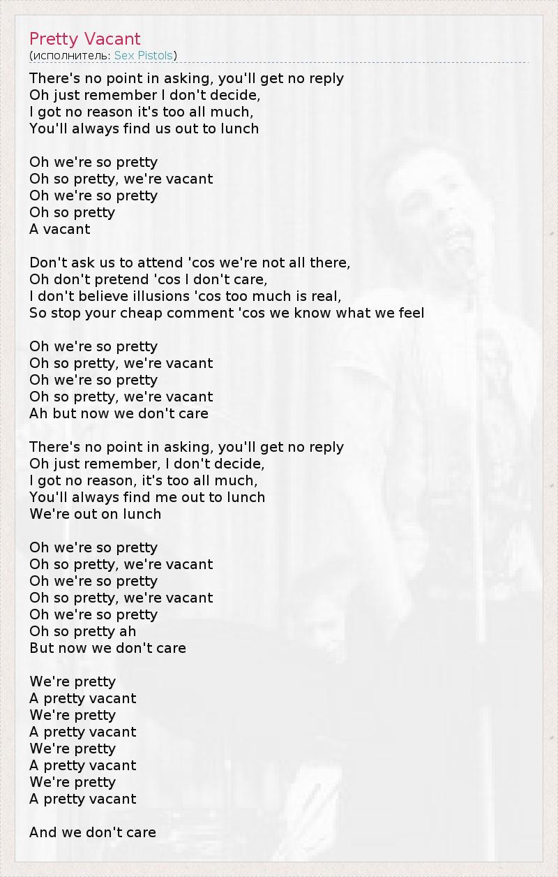 А как ты думаешь, о чем песня "Pretty Vacant" ?