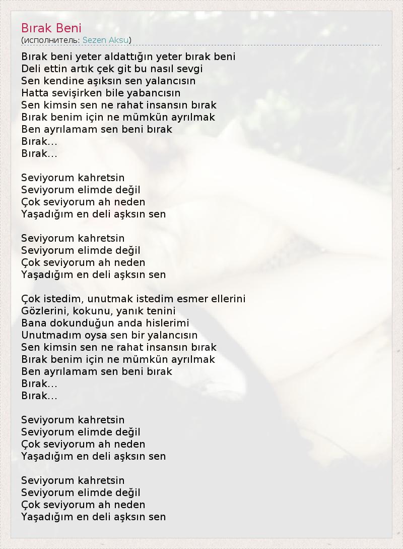А как ты думаешь, о чем песня "Bırak Beni" ?
