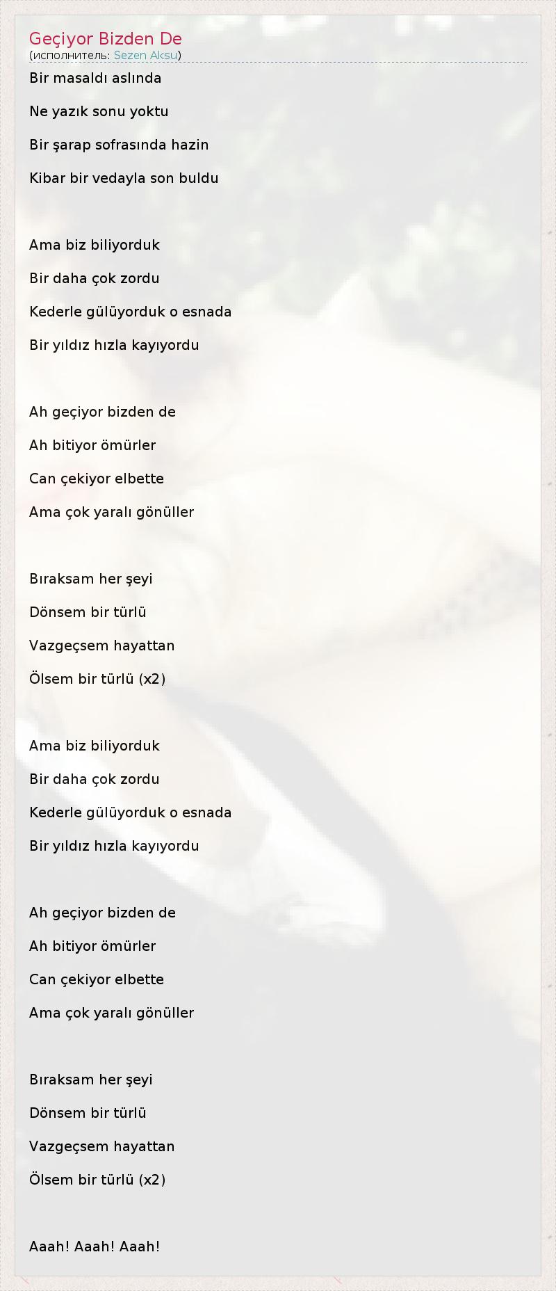 А как ты думаешь, о чем песня "Geçiyor Bizden De" ?