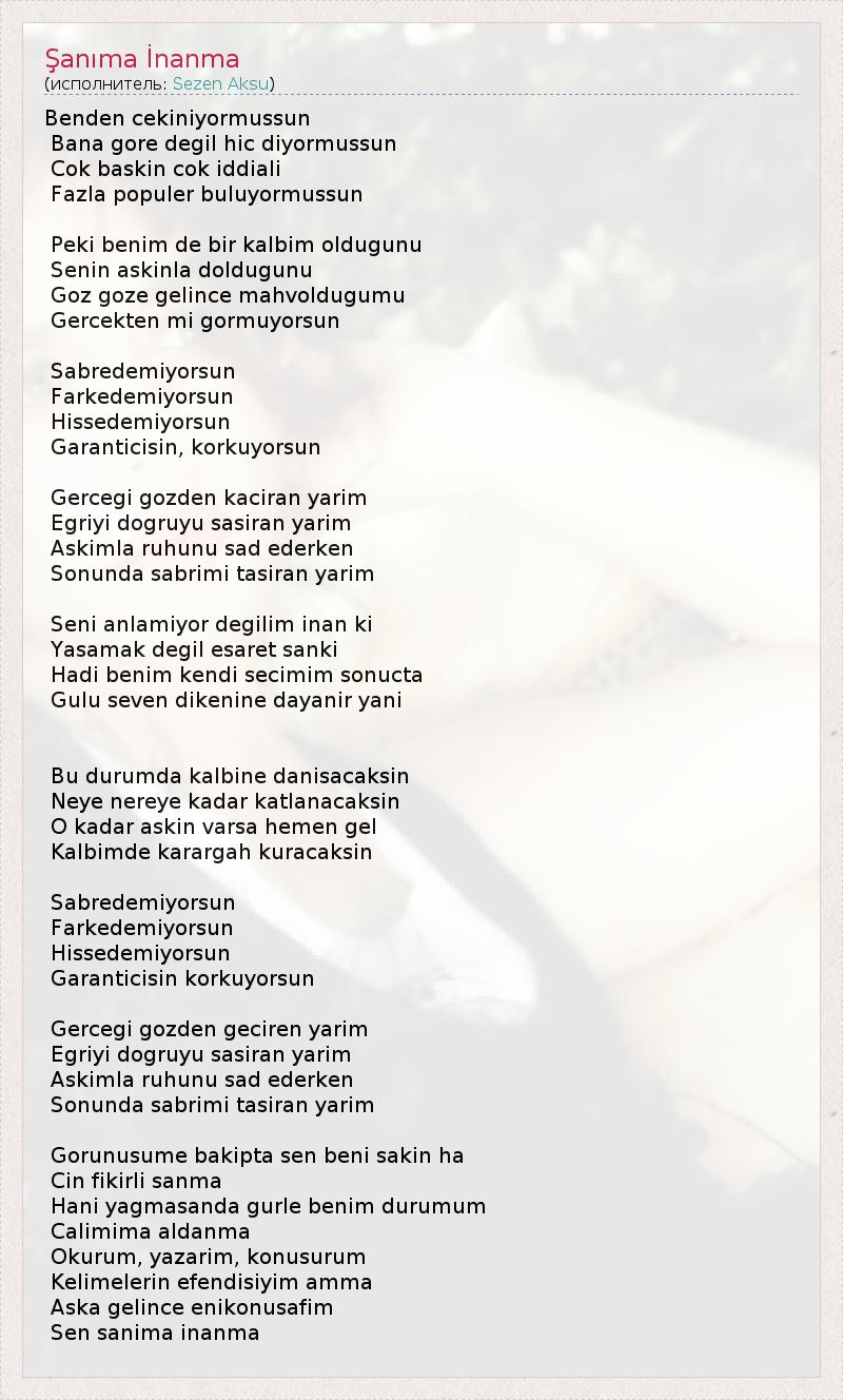 А как ты думаешь, о чем песня "Şanıma İnanma" ?