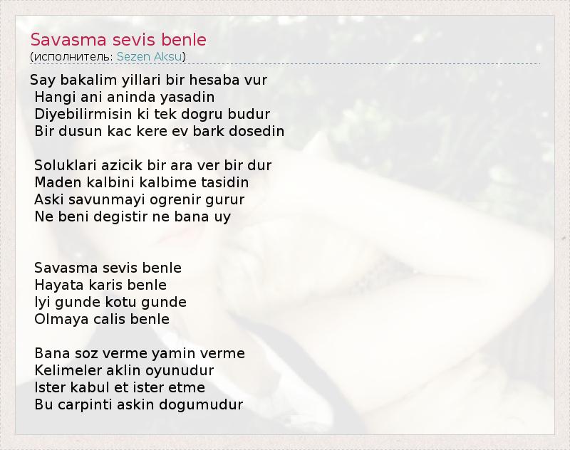 А как ты думаешь, о чем песня "Savasma sevis benle" ?