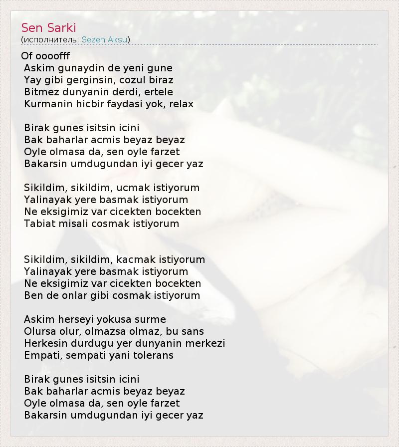 А как ты думаешь, о чем песня "Sen Sarki" ?