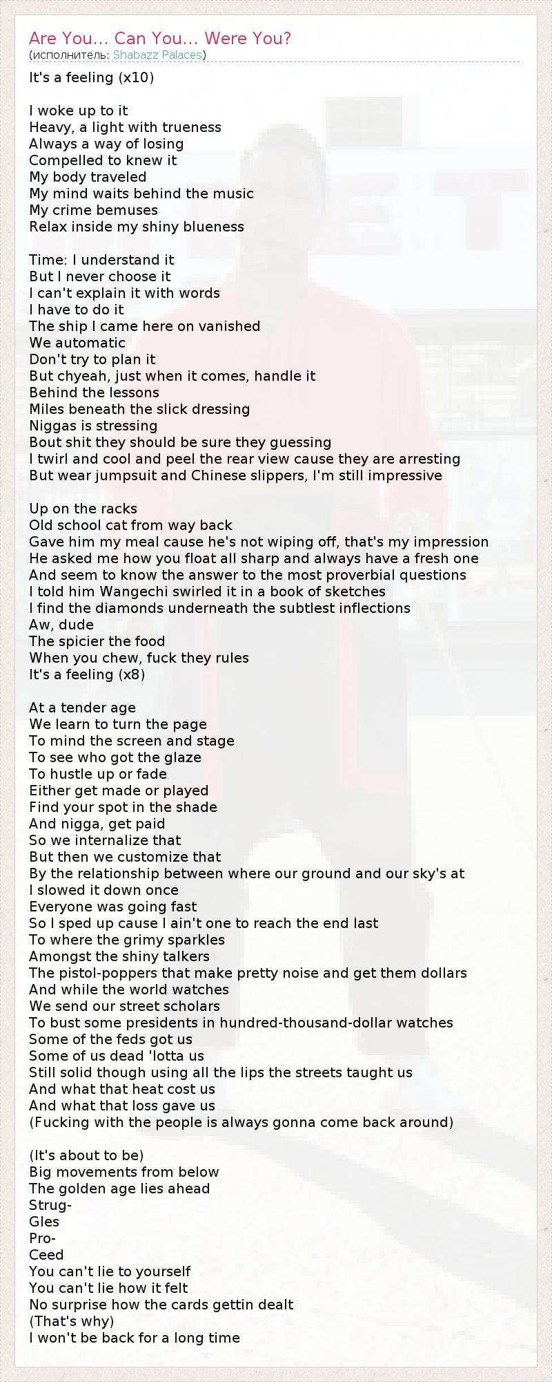 А как ты думаешь, о чем песня "Are You… Can You… Were You?" ?
