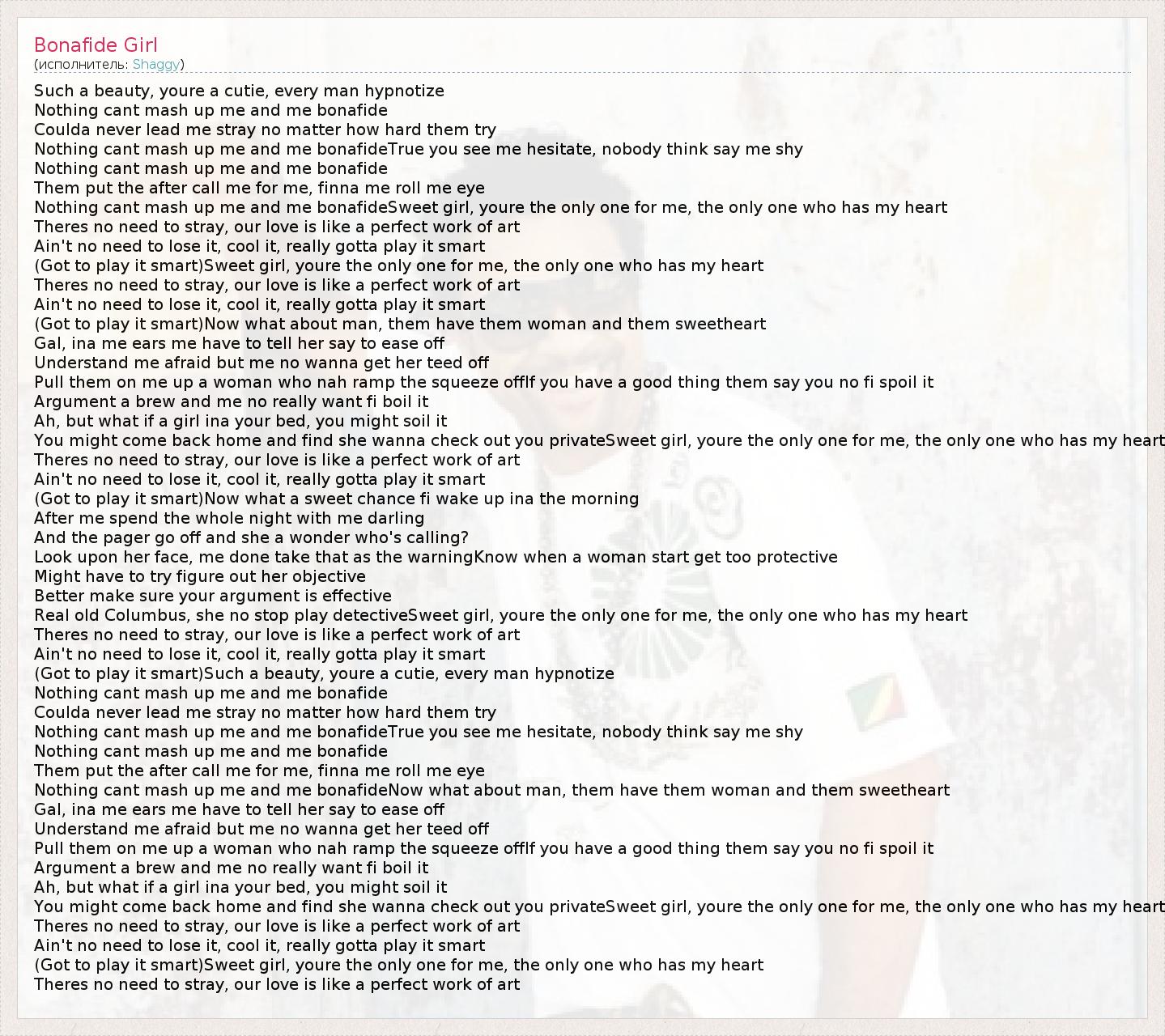 А как ты думаешь, о чем песня "Bonafide Girl" ?