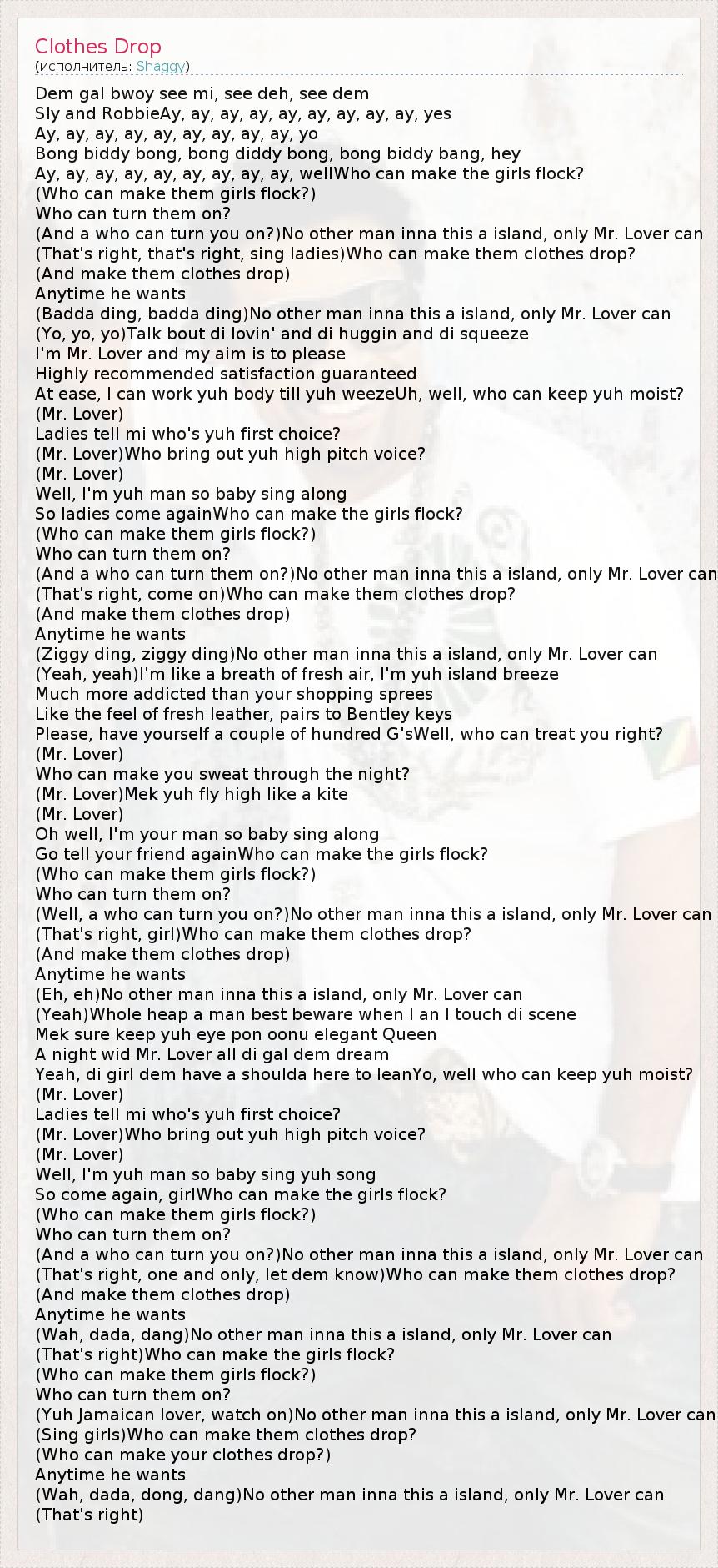 А как ты думаешь, о чем песня "Clothes Drop" ?