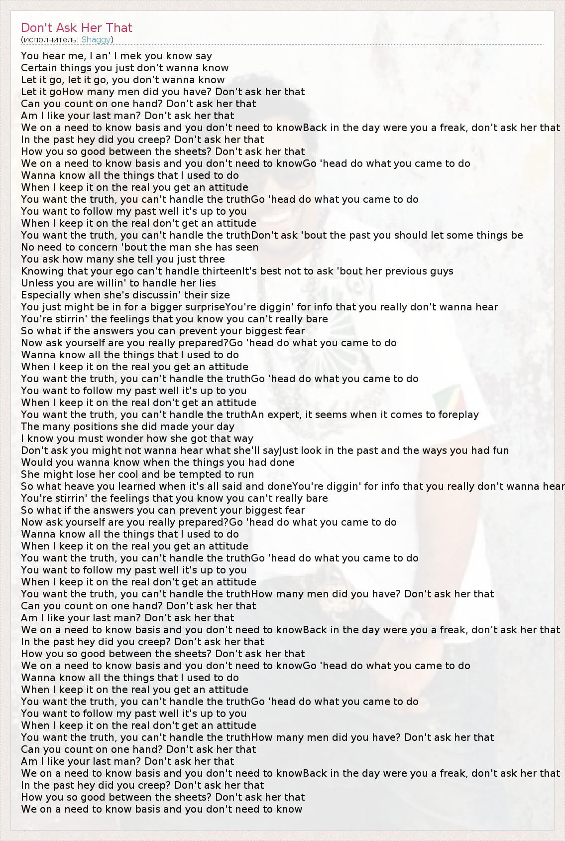 А как ты думаешь, о чем песня "Don't Ask Her That" ?