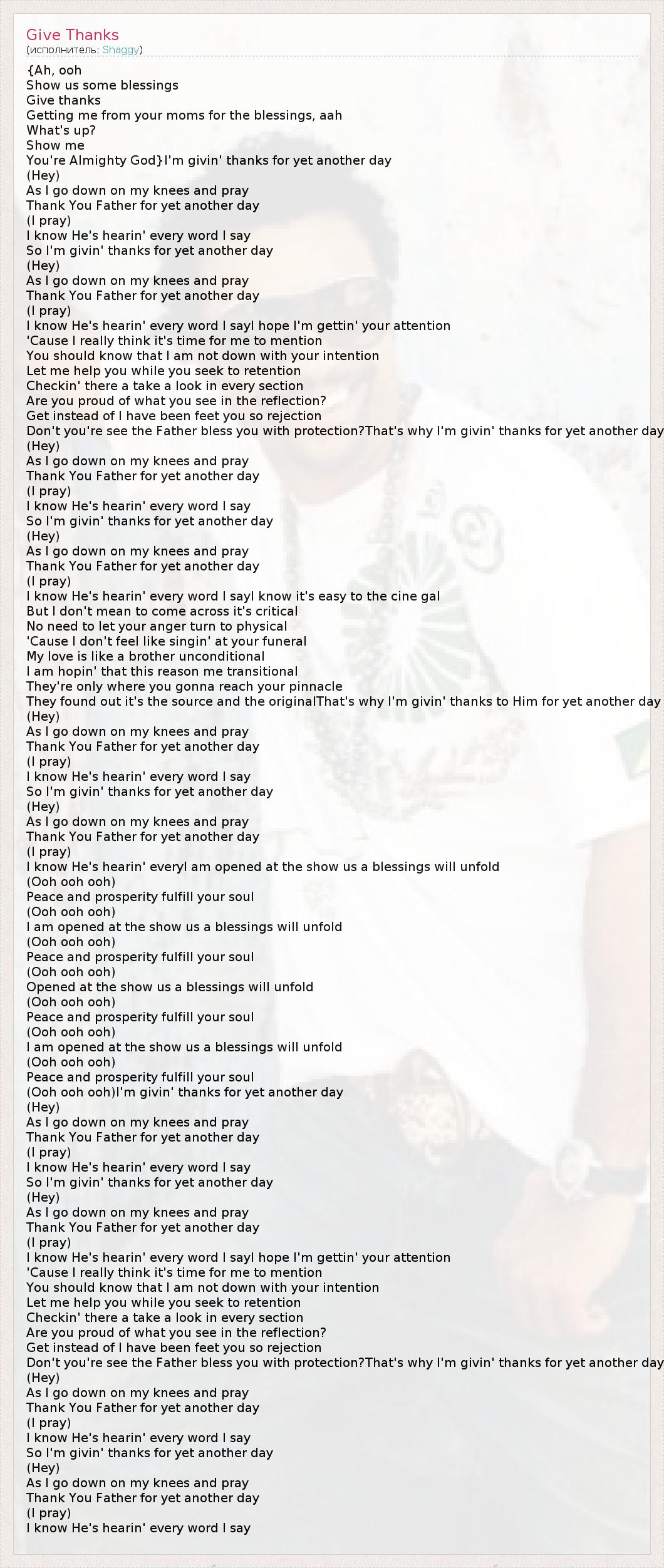 А как ты думаешь, о чем песня "Give Thanks" ?