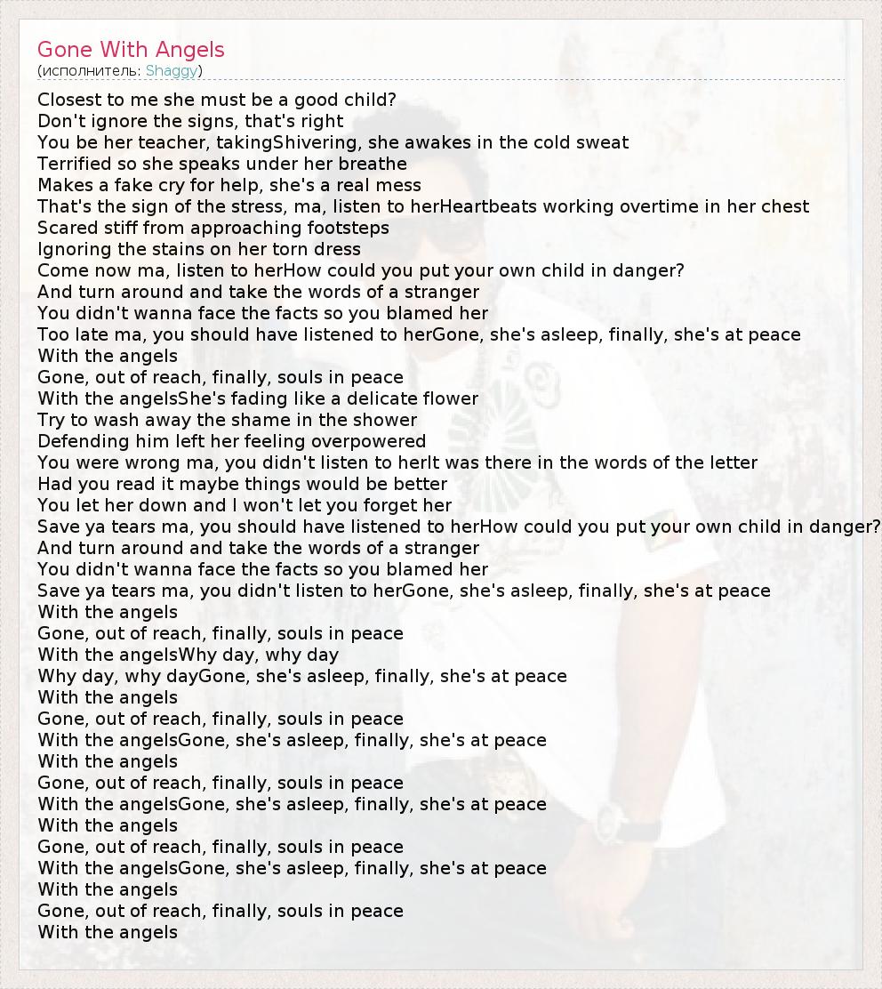 А как ты думаешь, о чем песня "Gone With Angels" ?