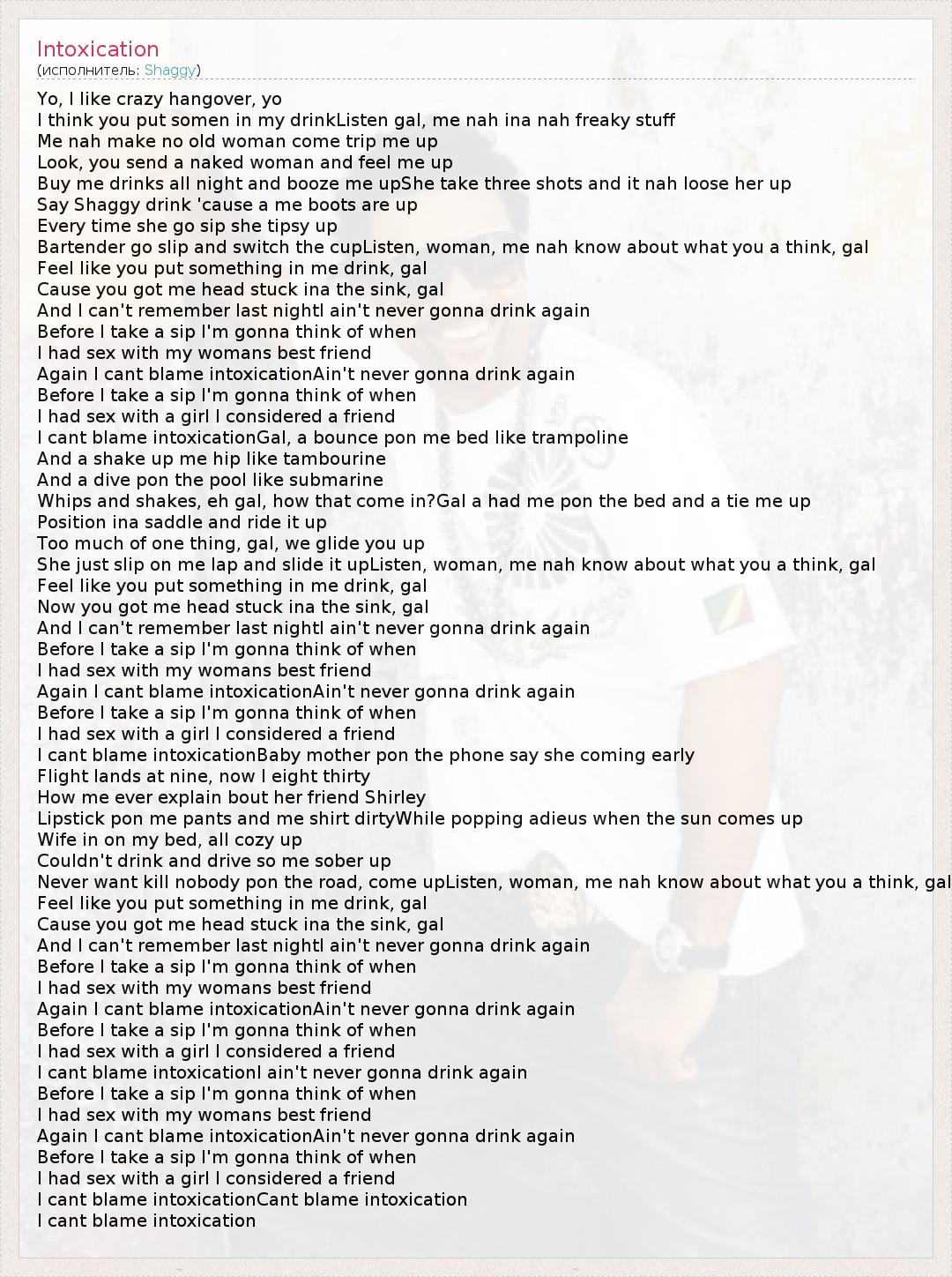 А как ты думаешь, о чем песня "Intoxication" ?