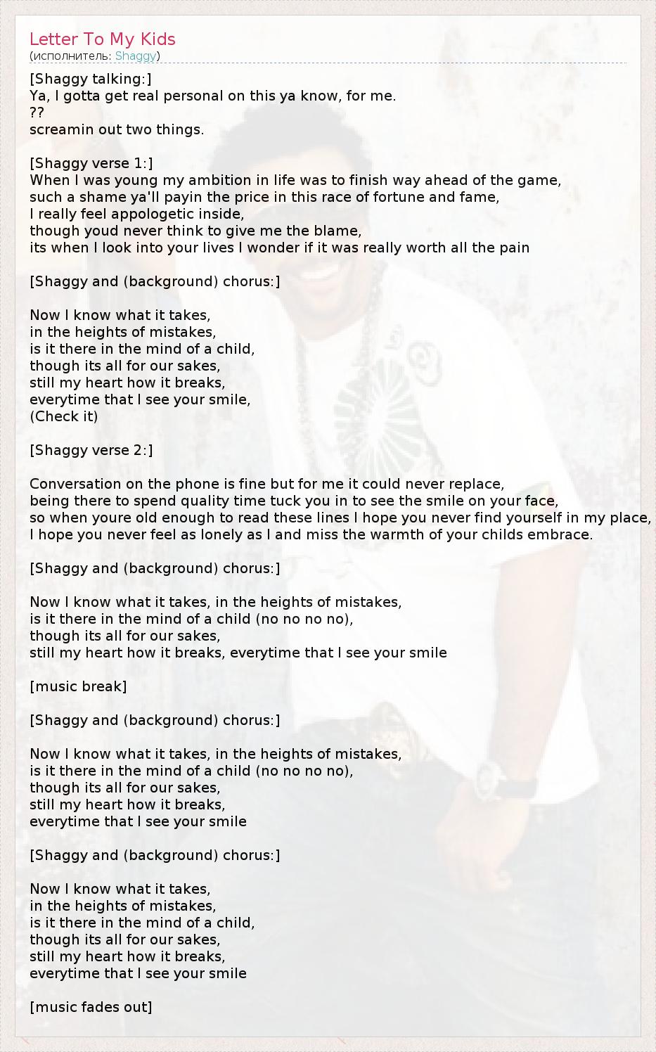 А как ты думаешь, о чем песня "Letter To My Kids" ?