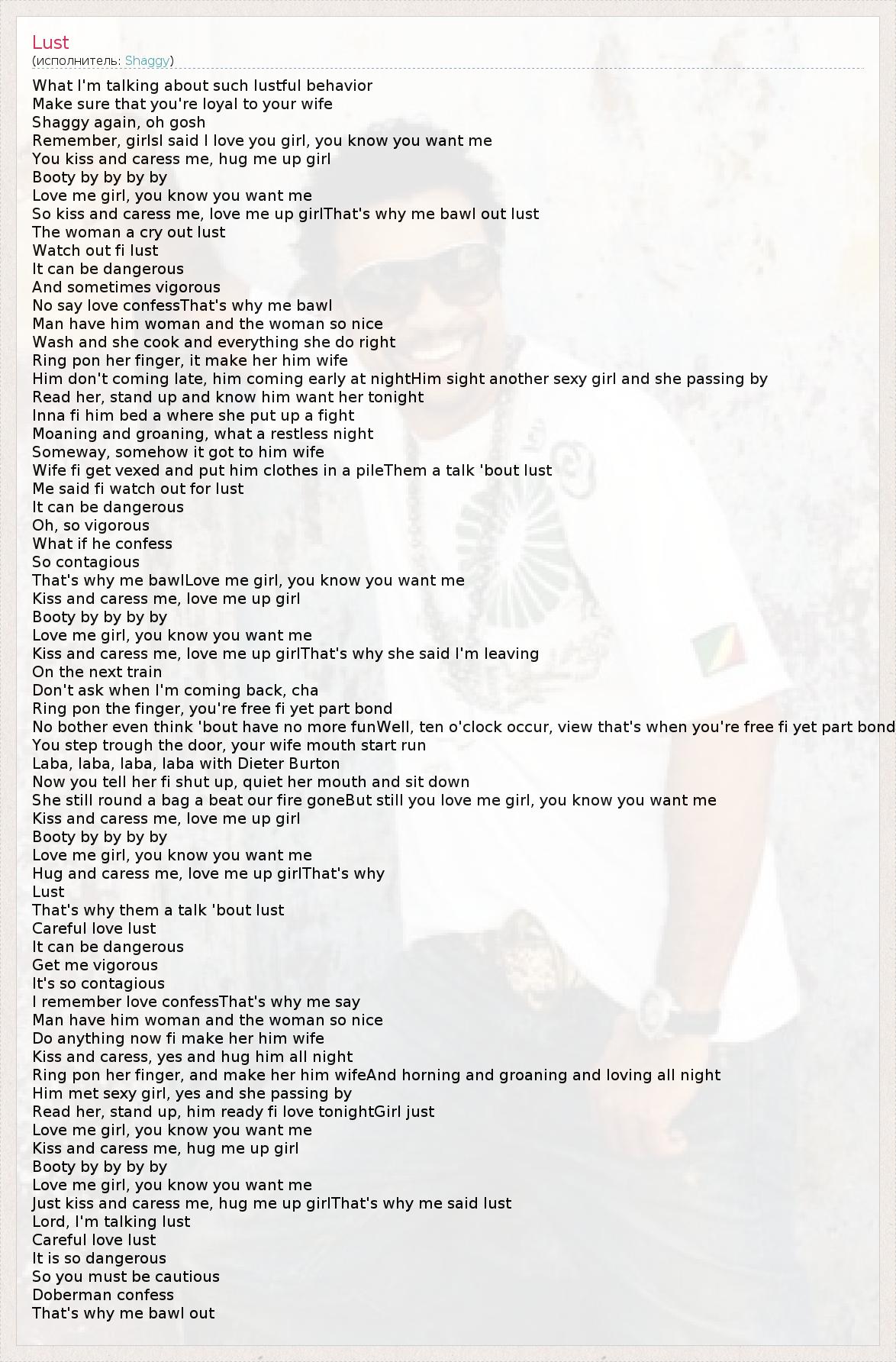 Just kiss and caress me, hug me up girlThat's why me said lust