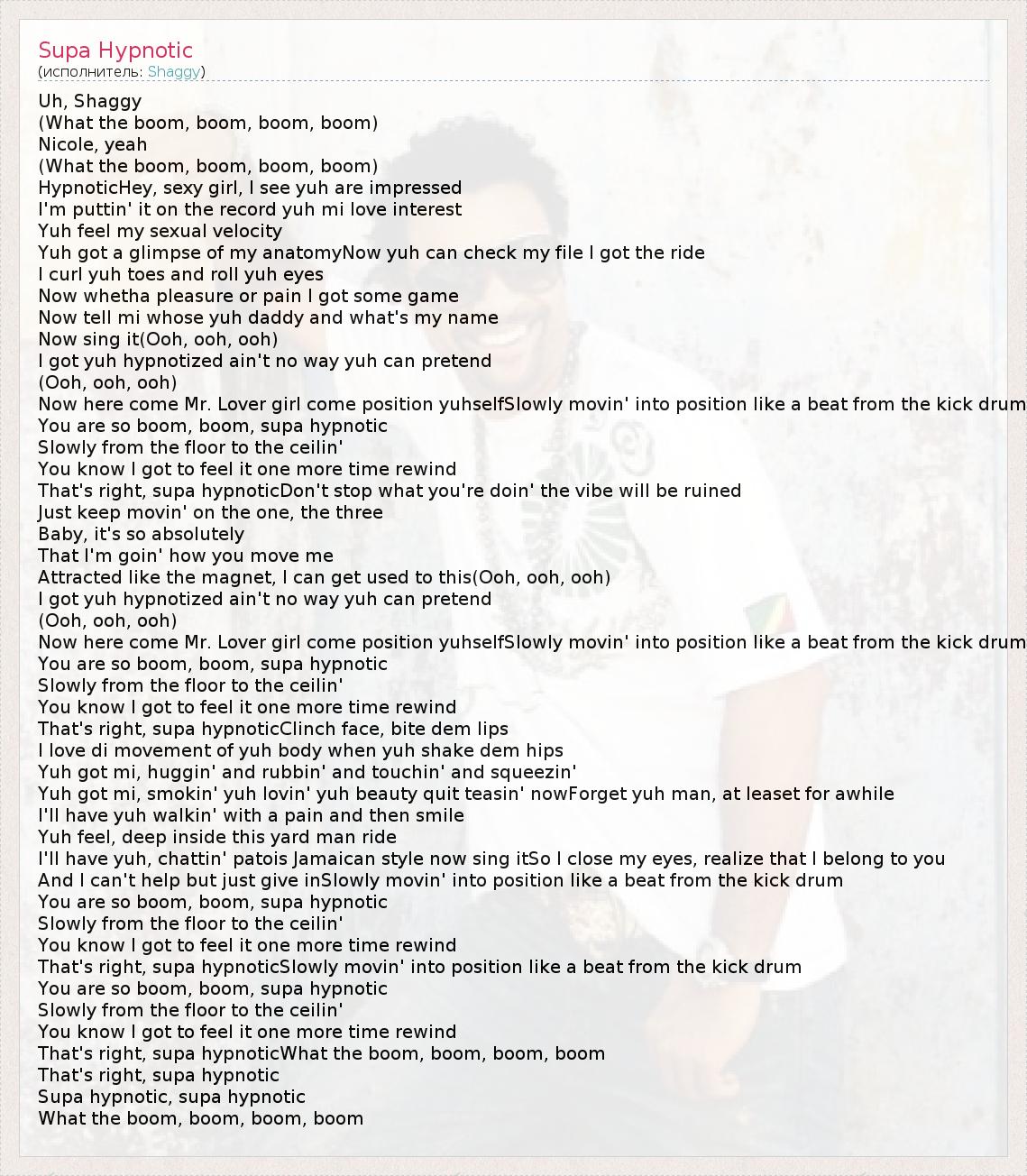 А как ты думаешь, о чем песня "Supa Hypnotic" ?