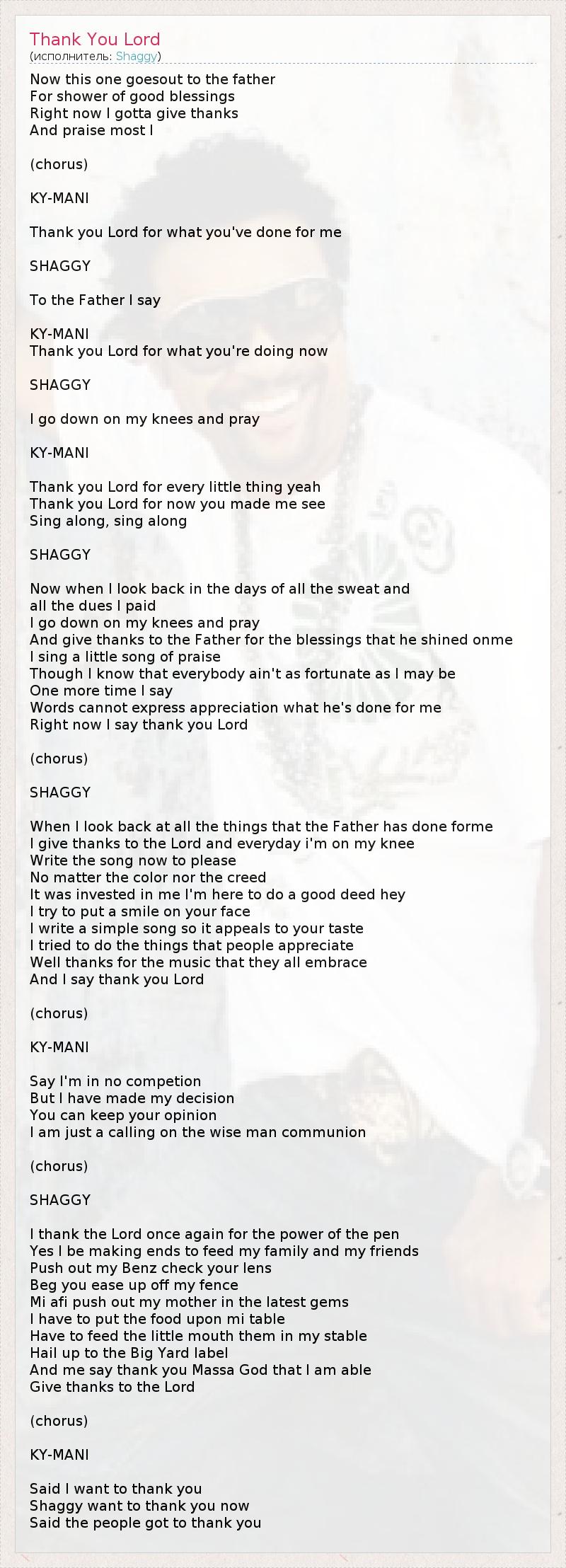 А как ты думаешь, о чем песня "Thank You Lord" ?