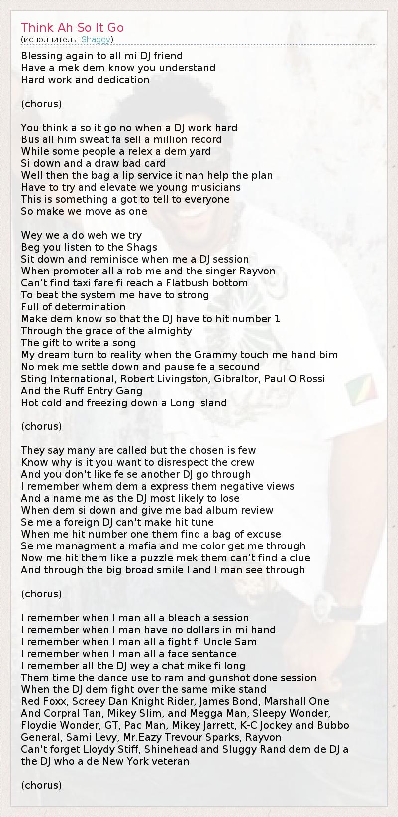 А как ты думаешь, о чем песня "Think Ah So It Go" ?