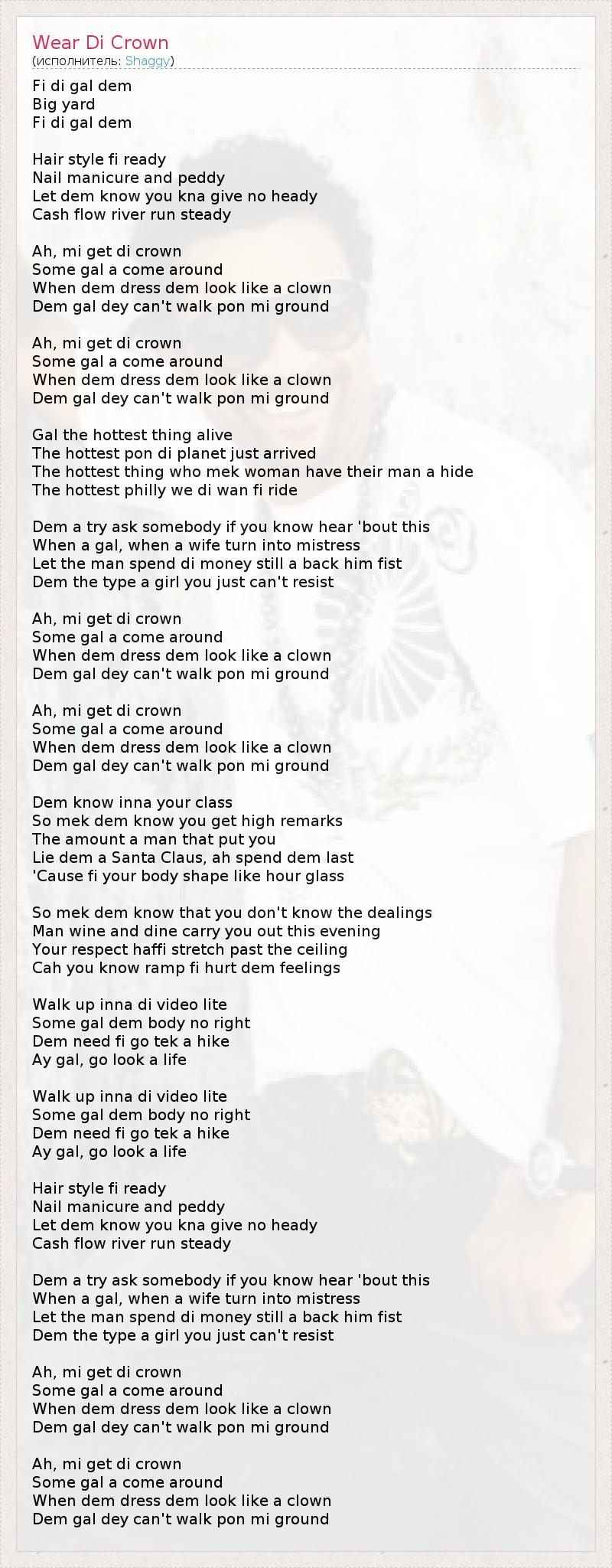 А как ты думаешь, о чем песня "Wear Di Crown" ?