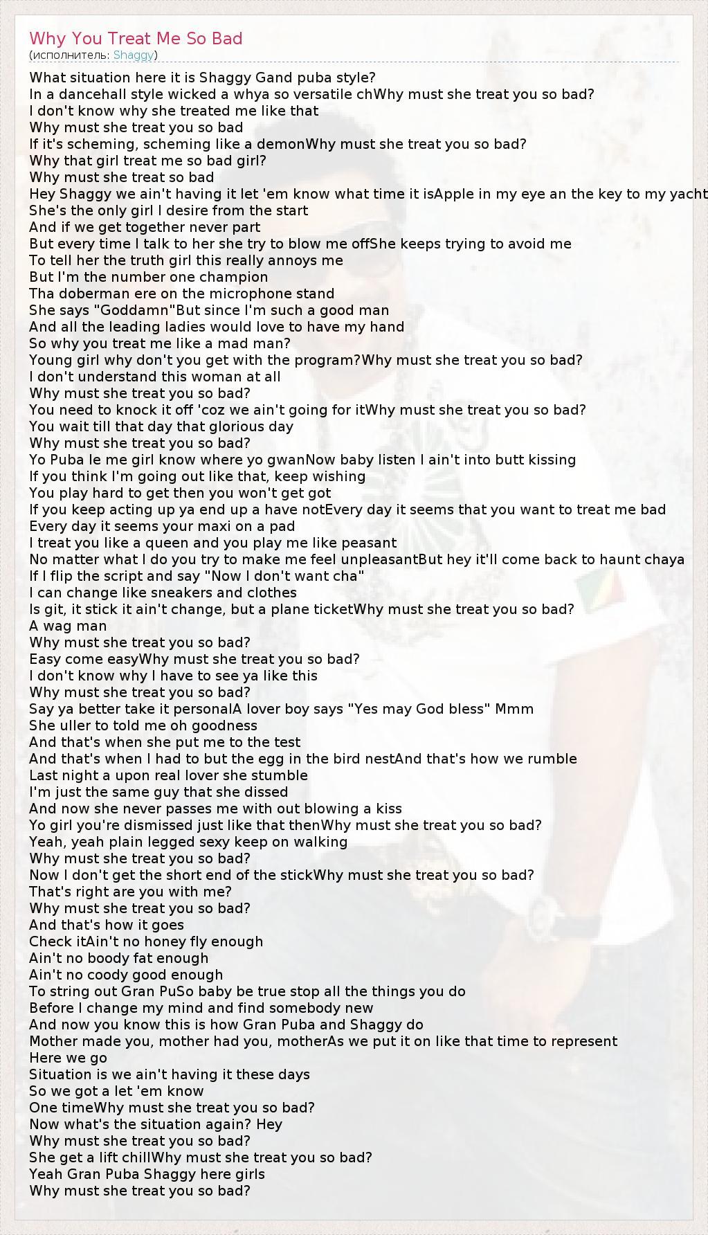 ГлавнаяИсполнителиShaggyWhy You Treat Me So Bad