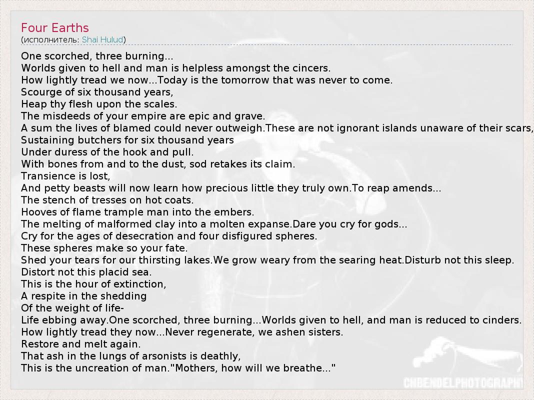 А как ты думаешь, о чем песня "Four Earths" ?