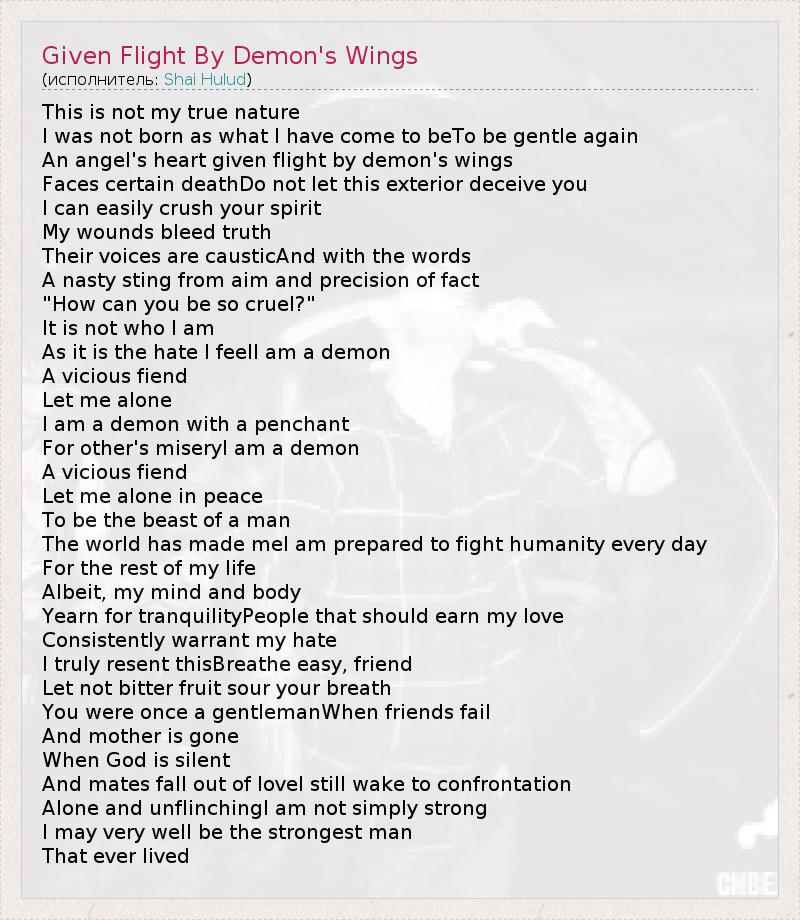 А как ты думаешь, о чем песня "Given Flight By Demon's Wings" ?