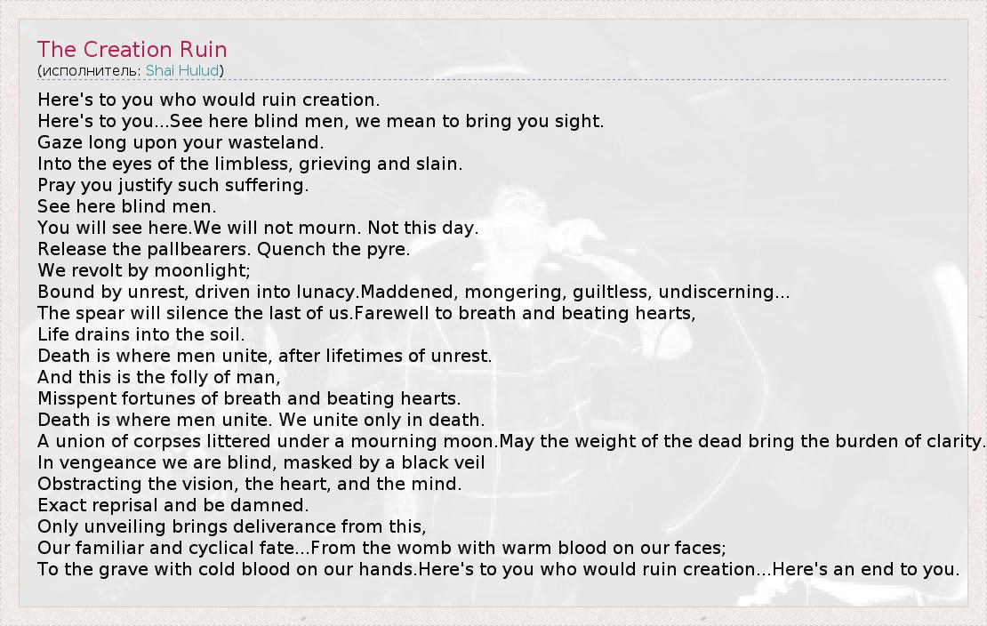 А как ты думаешь, о чем песня "The Creation Ruin" ?