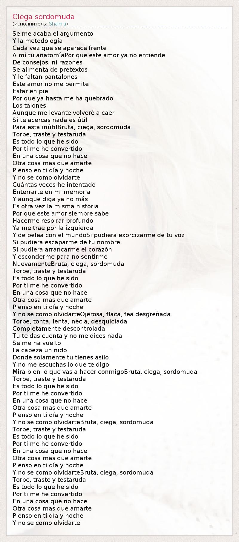 Y no se como olvidarteBruta, ciega, sordomuda
