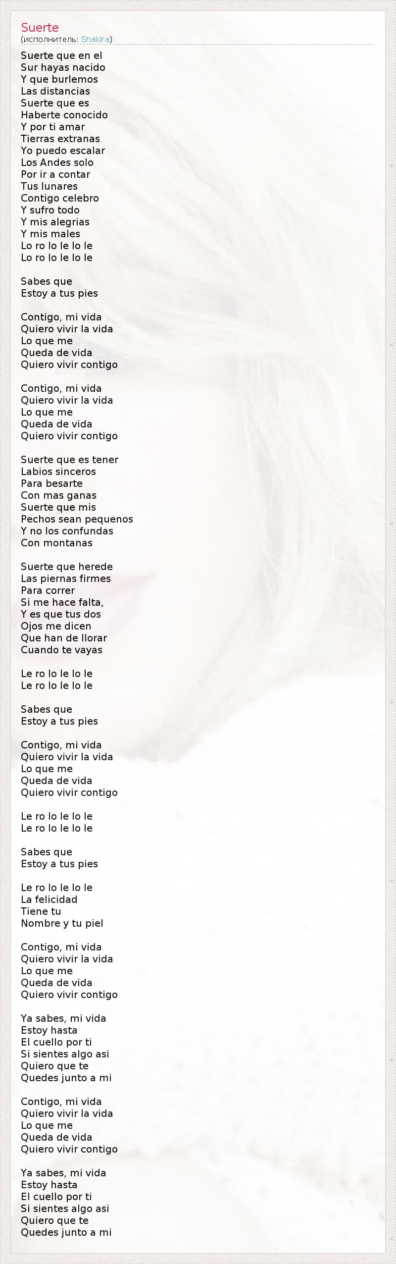 Это интересно:Шаки́ра, полное имя Шаки́ра Исабе́ль Меба́рак Рипо́лль (исп. Shakira Isabel Mebarak Ripoll, араб. شاكيرا إيزابيل مبارك ريبول )‎‎; род. 2 февраля 1977, Барранкилья) —ливано-колумбийская певица, танцовщица, автор песен, композитор, музыкальный продюсер и филантроп.Колумбийская певица Шакира — феномен даже среди обитателей музыкального Олимпа. Она всегда знала, что родилась быть звездой — ибо такой... продолжение