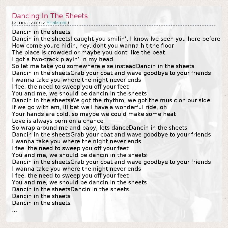 А как ты думаешь, о чем песня "Dancing In The Sheets" ?