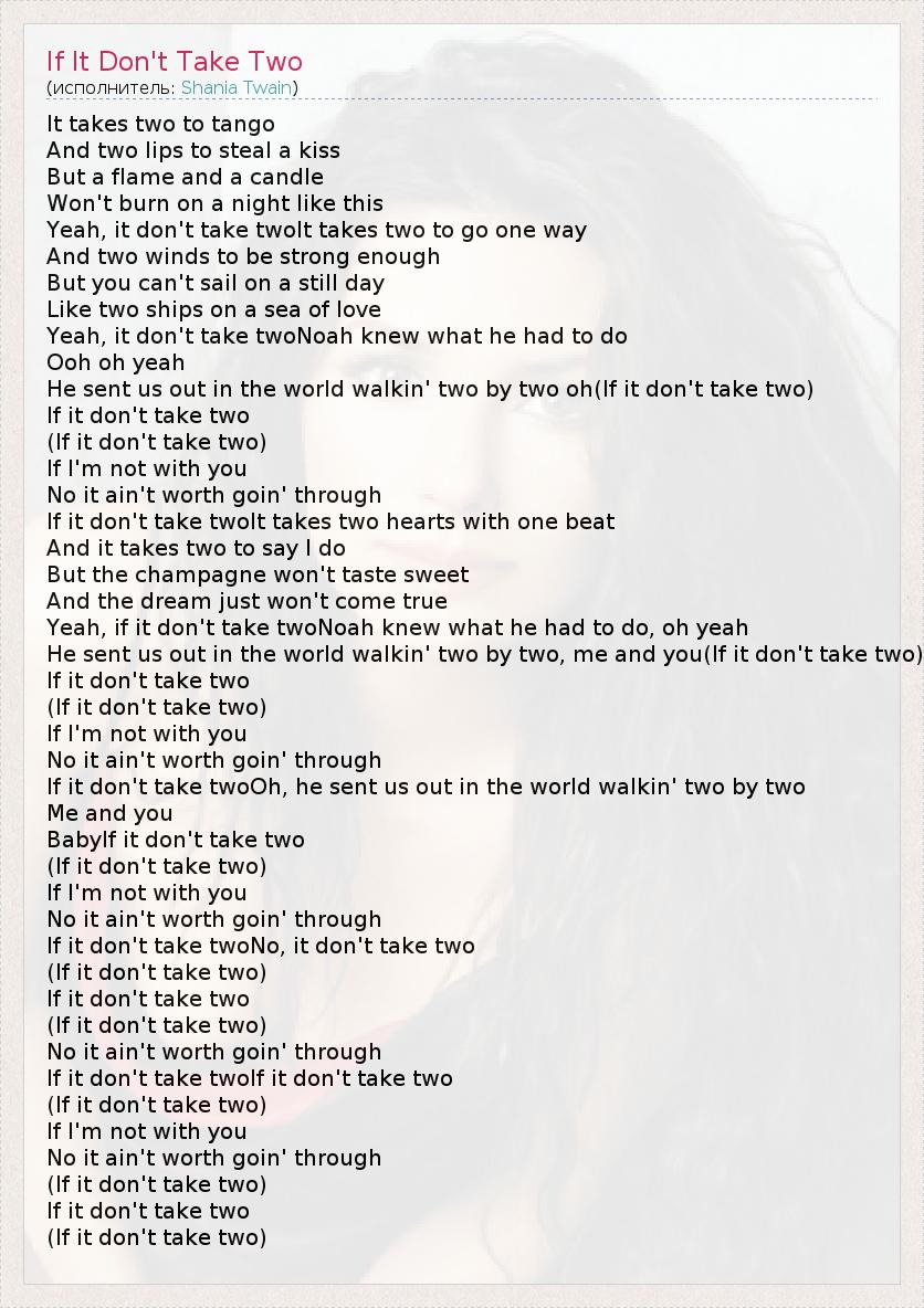 А как ты думаешь, о чем песня "If It Don't Take Two" ?