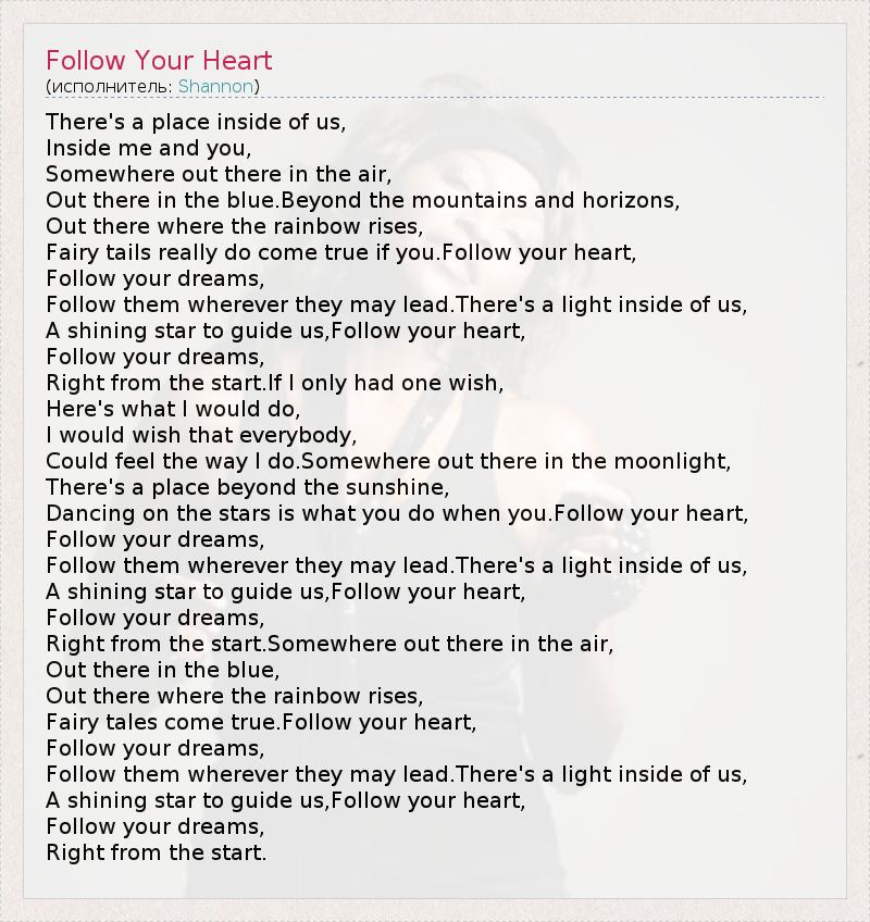 А как ты думаешь, о чем песня "Follow Your Heart" ?