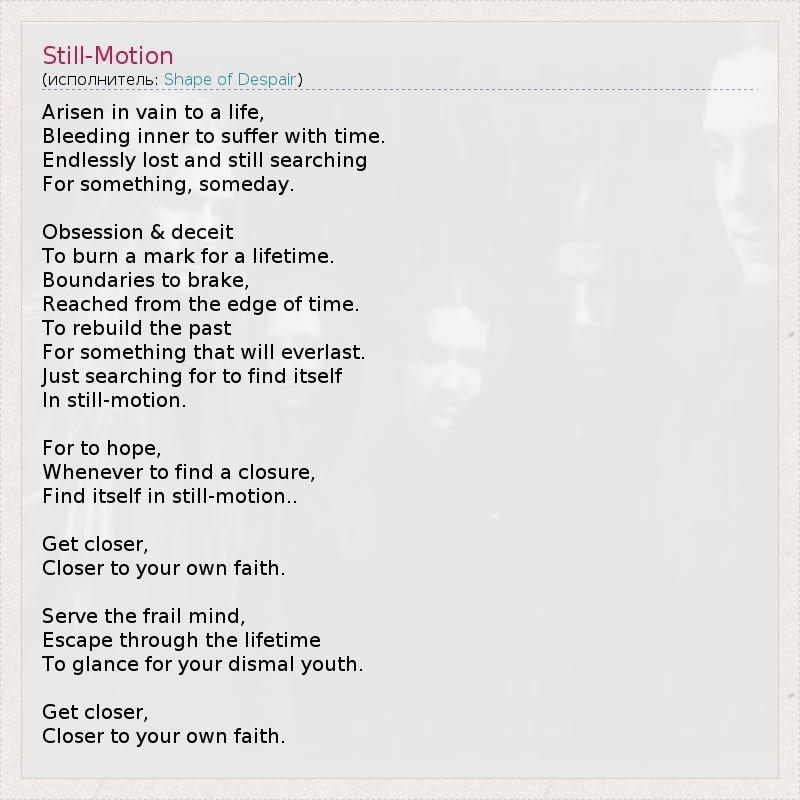 А как ты думаешь, о чем песня "Still-Motion" ?
