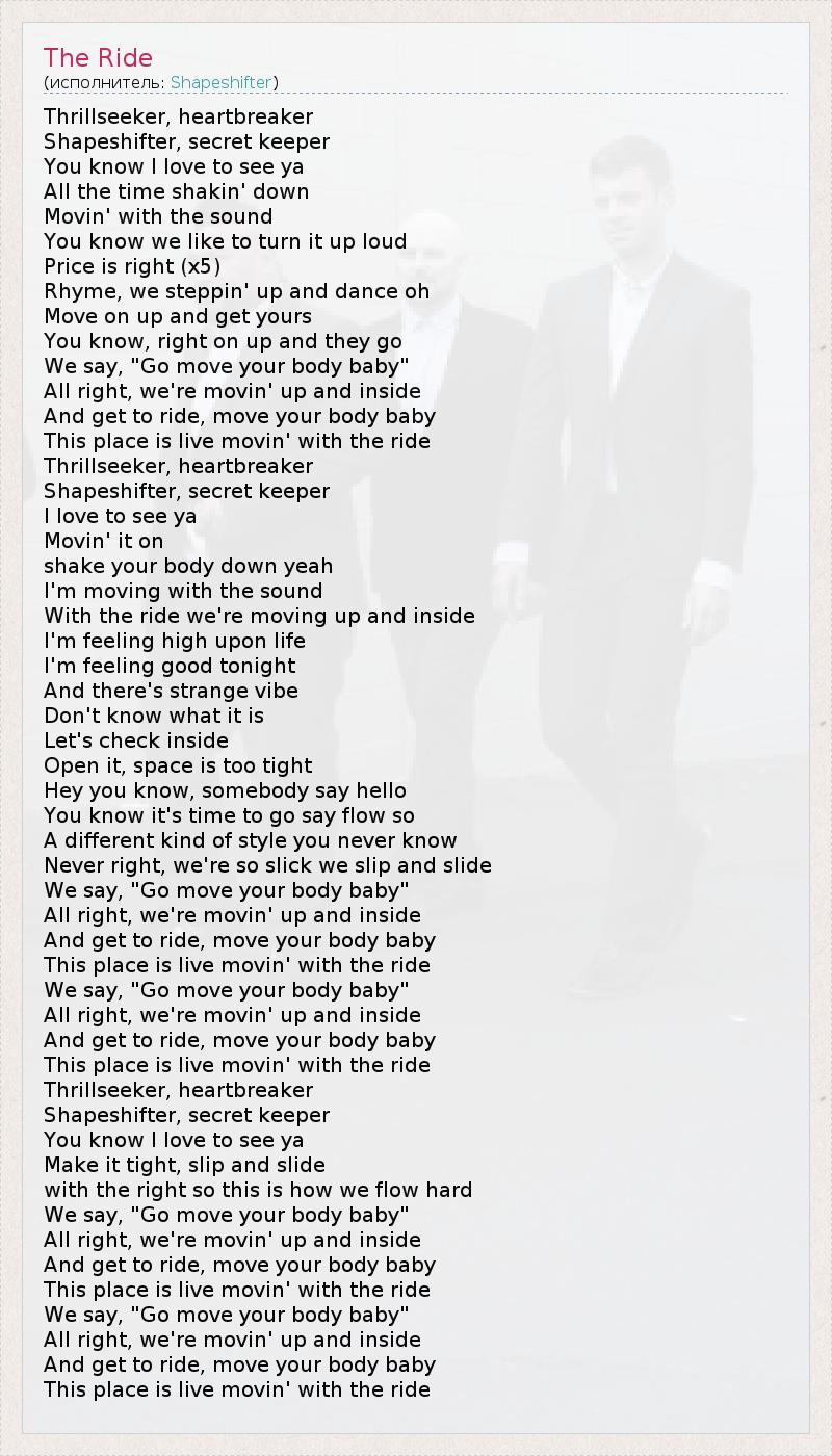 Это интересно:Имеются несколько коллективов с таким названием.1. Shapeshifter — новозеландский коллектив, пишущий и исполняющий музыку в жанре драм-н-бэйс и ликвид фанк, хотя сами участники предпочитают определение "хард соул". Группа была образована в начале двухтысячных и выпустила пять студийных альбомов: Real Time (2001), Riddim Wise (2004), Soulstice... продолжение
