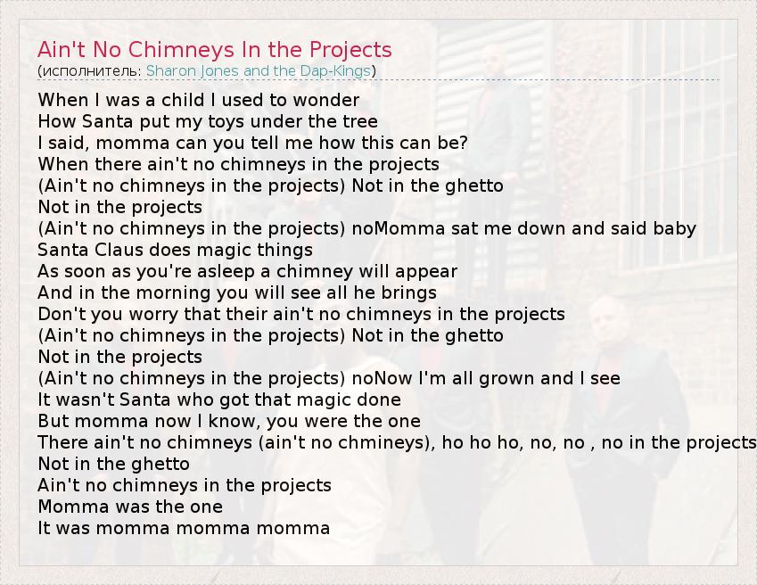 А как ты думаешь, о чем песня "Ain't No Chimneys In the Projects" ?