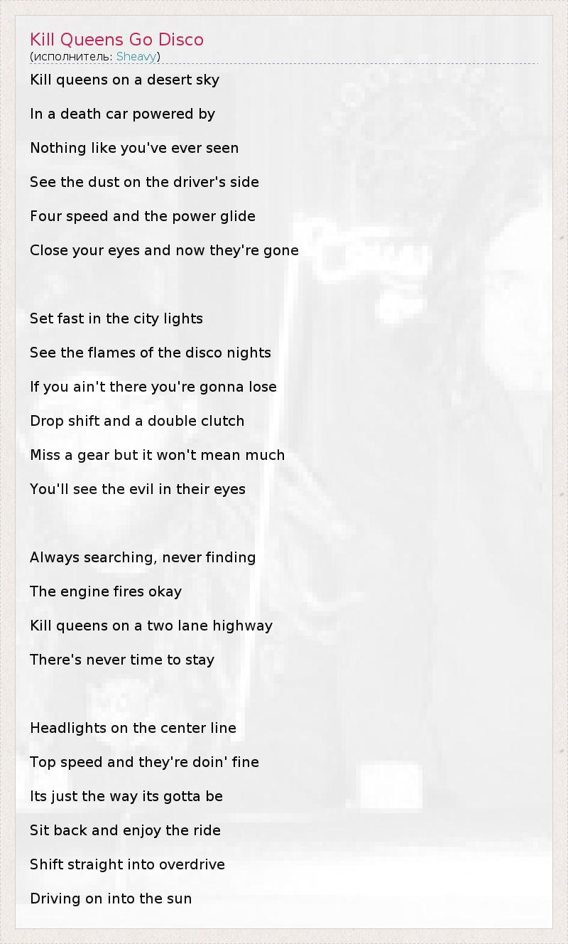 А как ты думаешь, о чем песня "Kill Queens Go Disco" ?