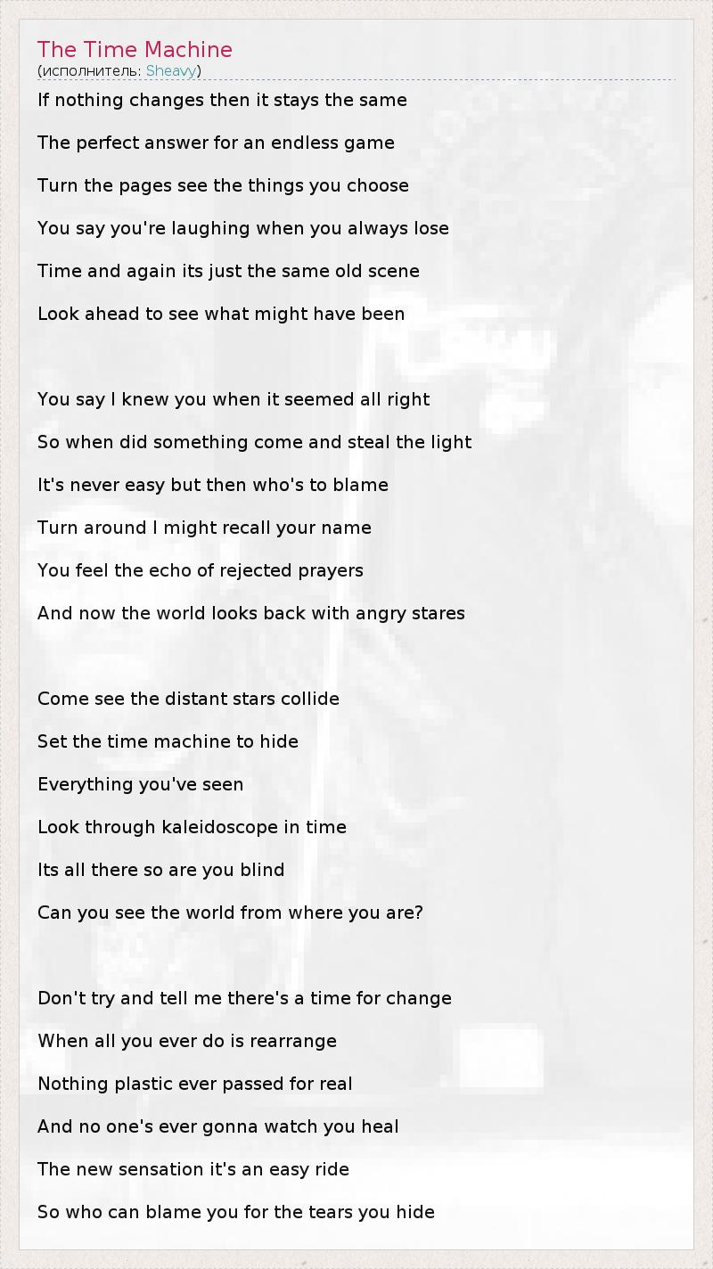 А как ты думаешь, о чем песня "The Time Machine" ?