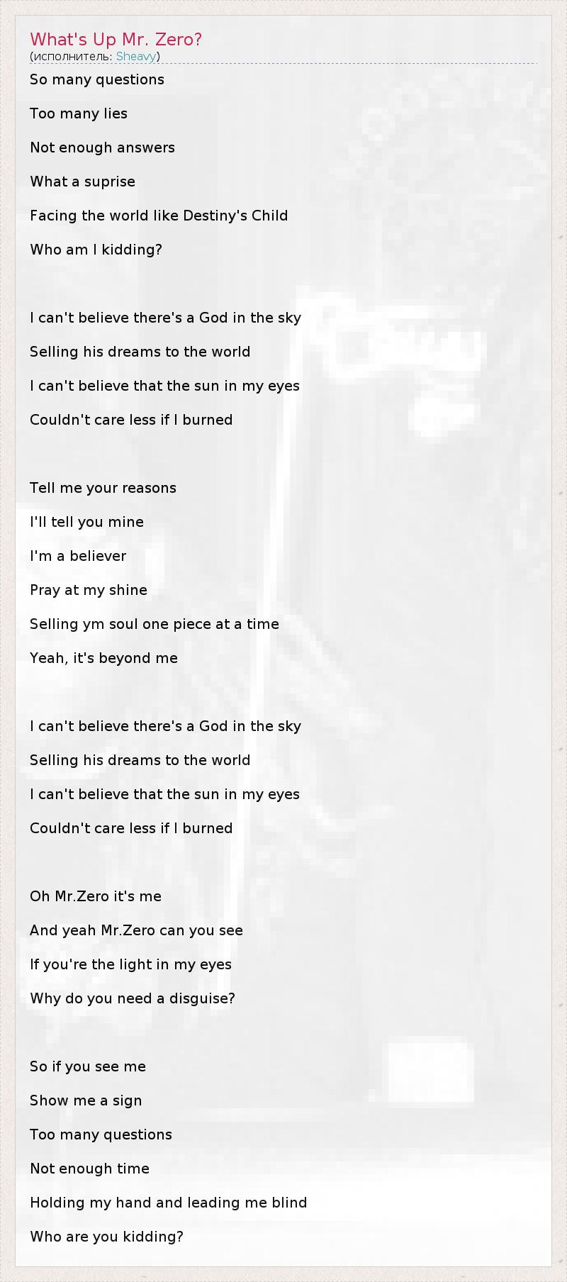 А как ты думаешь, о чем песня "What's Up Mr. Zero?" ?