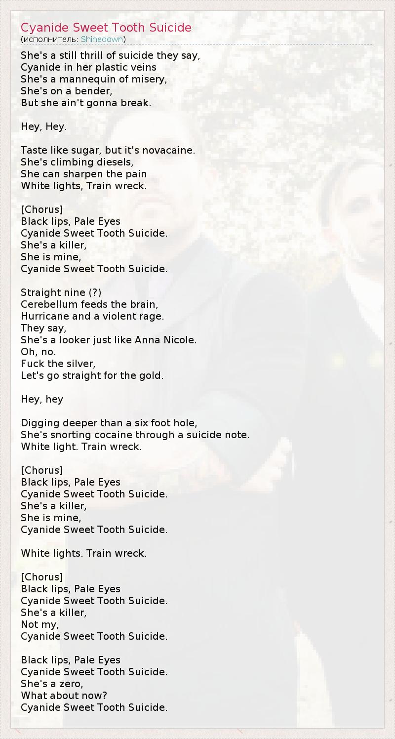 А как ты думаешь, о чем песня "Cyanide Sweet Tooth Suicide" ?