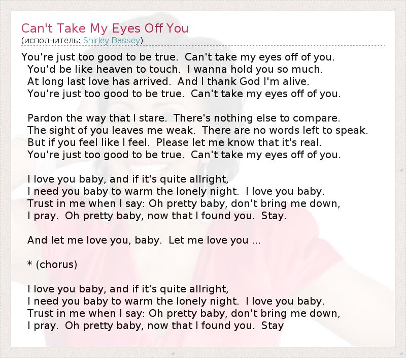 А как ты думаешь, о чем песня "Can't Take My Eyes Off You" ?