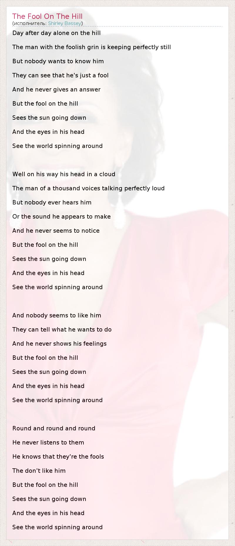 А как ты думаешь, о чем песня "The Fool On The Hill" ?