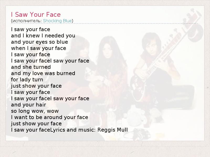 А как ты думаешь, о чем песня "I Saw Your Face" ?