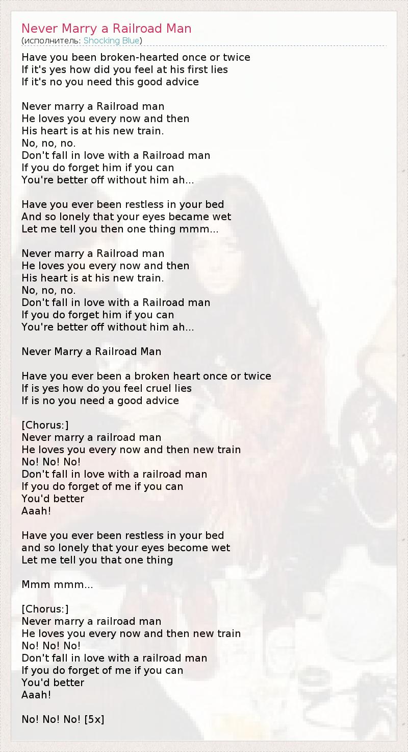 А как ты думаешь, о чем песня "Never Marry a Railroad Man" ?