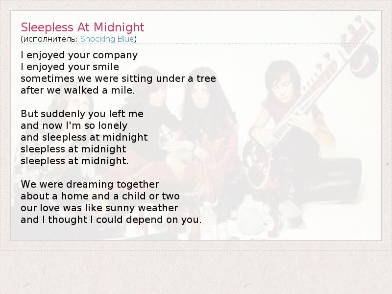 А как ты думаешь, о чем песня "Sleepless At Midnight" ?