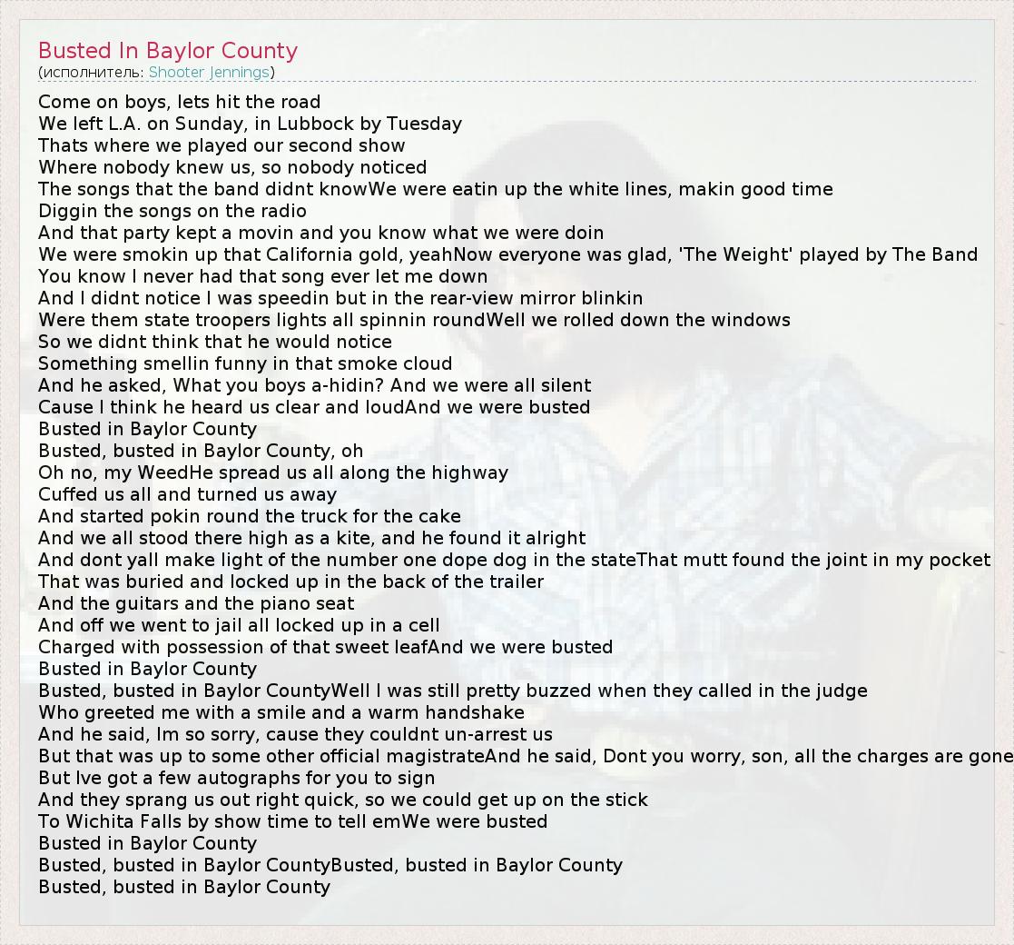 А как ты думаешь, о чем песня "Busted In Baylor County" ?
