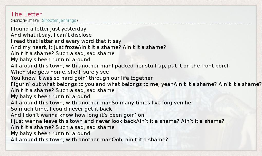 Figurin' out what belongs to you and what belongs to me, yeahAin't it a shame? Ain't it a shame?