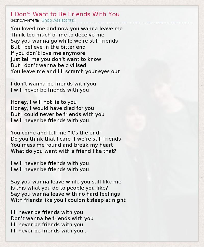 А как ты думаешь, о чем песня "I Don't Want to Be Friends With You" ?