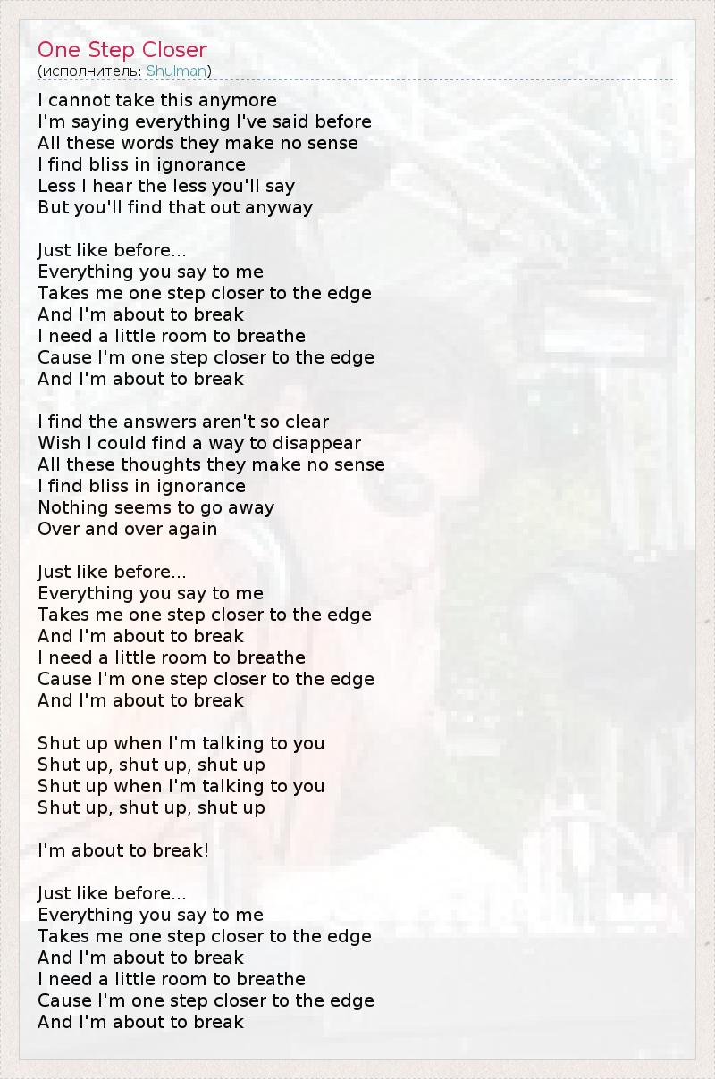 А как ты думаешь, о чем песня "One Step Closer" ?