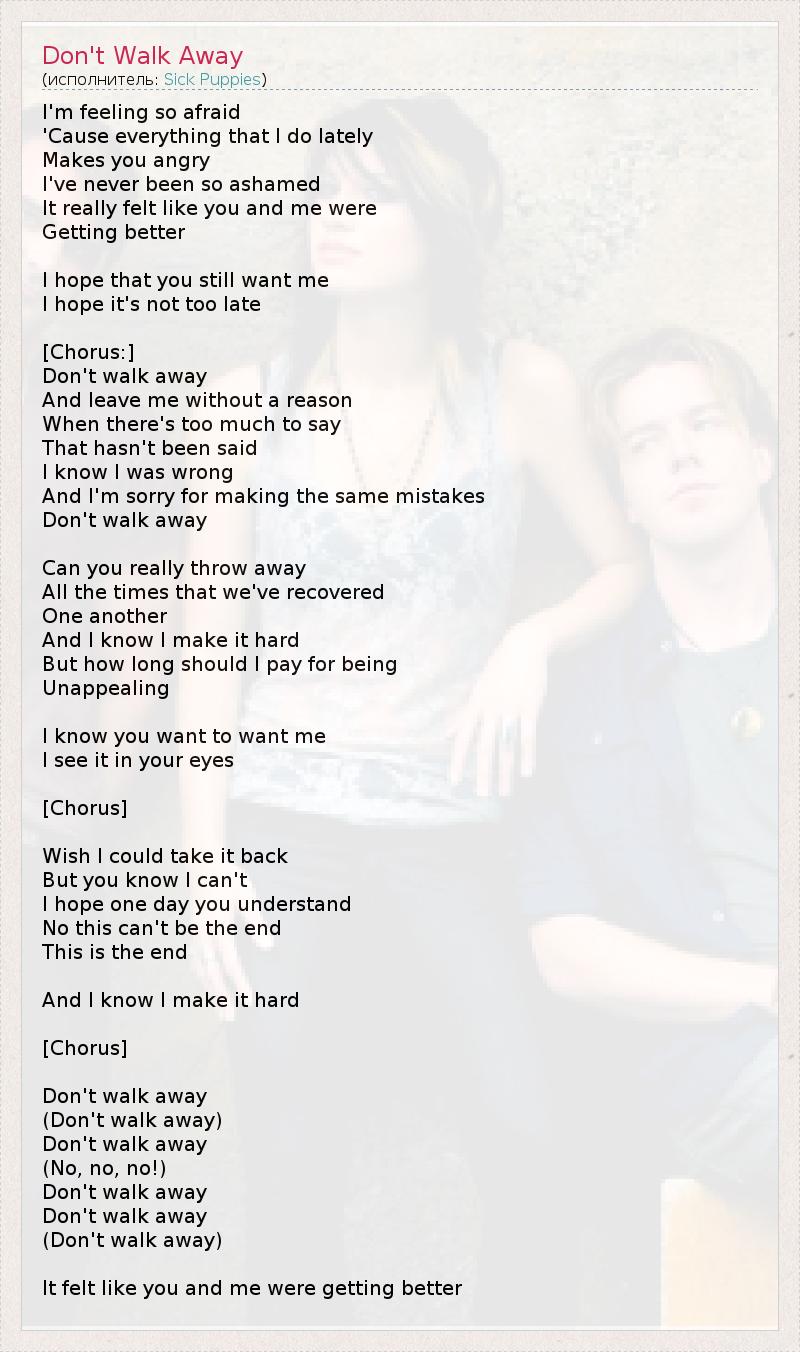 А как ты думаешь, о чем песня "Don't Walk Away" ?