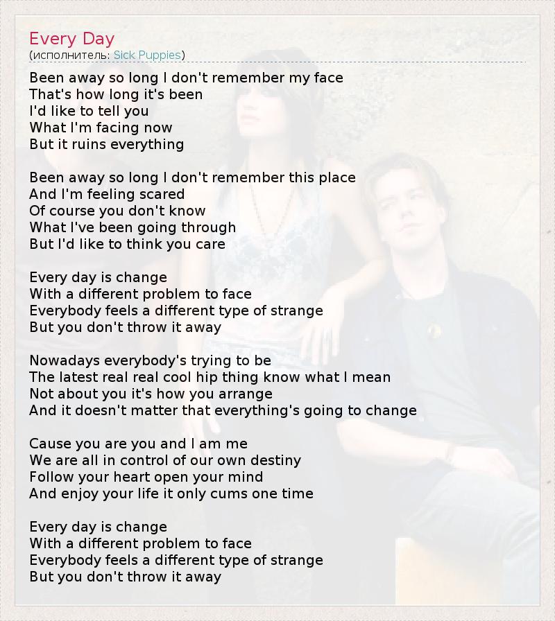 Это интересно:Sick Puppies - рок-группа, основанная в Сиднее, Австралия, в 1997 году.Sick Puppies получили известность в 2006 году, когда их песня «All the Same» была загружена вместе с видео на YouTube. Видео, снятое при поддержке "Бесплатных объятий", было в Сиднее, и с тех пор видео получило 50000 просмотров на веб сайте. Успех последовал за Dressed Up as Life в 2007 году. Третий студийный альбом группы... продолжение