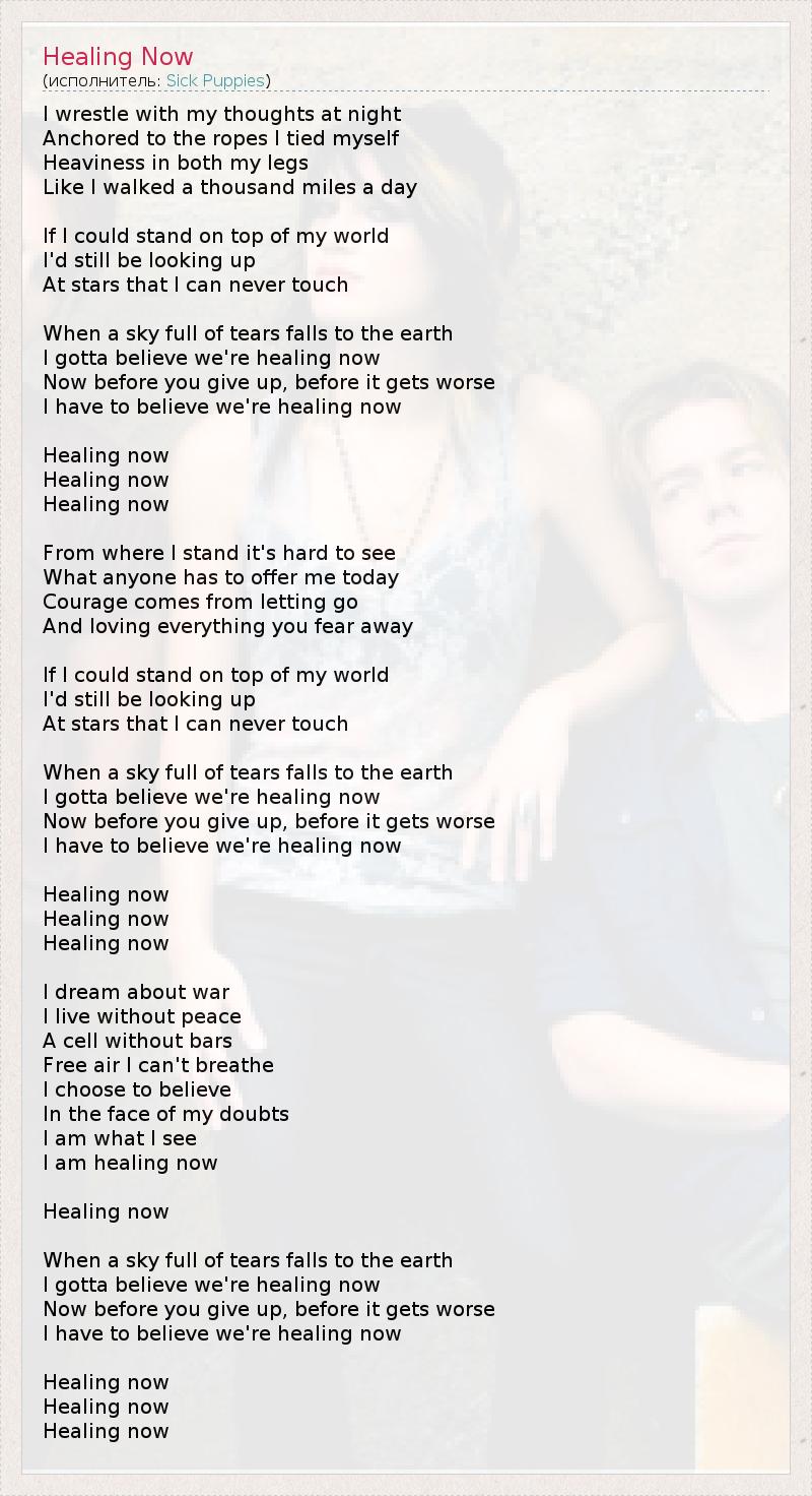 Это интересно:Sick Puppies - рок-группа, основанная в Сиднее, Австралия, в 1997 году.Sick Puppies получили известность в 2006 году, когда их песня «All the Same» была загружена вместе с видео на YouTube. Видео, снятое при поддержке "Бесплатных объятий", было в Сиднее, и с тех пор видео получило 50000 просмотров на веб сайте. Успех последовал за Dressed Up as Life в 2007 году. Третий студийный альбом группы... продолжение